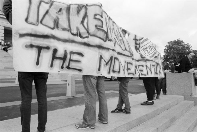 Protesters held up a banner during the protest at the State Capitol Building in Nashville (Davidson County) on Inauguration Day. Read more about this protest and see more pictures at Shuttering Thru Life.